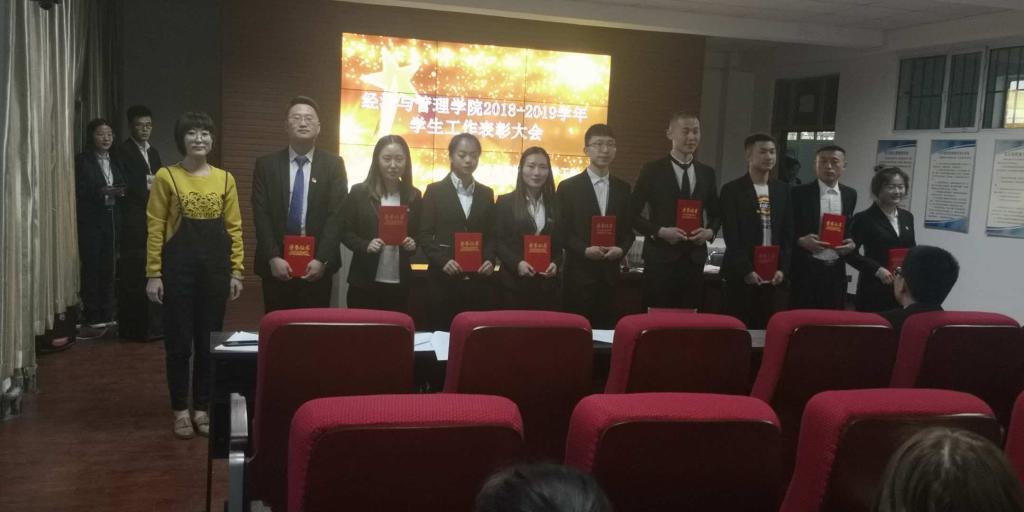 2018年5月14日晚7时,经济与管理学院在主教楼219举办2018-2019学年学生工作表彰大会,对在2018-2019学年学生工作中取得突出业绩、获得优异成绩的各班班干部及学生会成员进行表彰。经济与管理学院代理团总支书记、专职辅导员刘慧玲老师、学工办老师邢彩霞出席本次表彰会。各班团支书、班长、学习委员及学生会全体成员参加了会议。