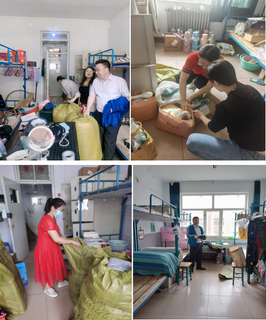 学院领导及全体班主任、辅导员走进毕业生宿舍,看望毕业生,并与毕业生亲切交流,了解他们的工作、生活、思想状况,为即将告别母校、踏上人生新征程的学子送上亲切的问候和深深的祝福,努力在全院营造全员参与的文明离校工作良好氛围。全体老师及返校同学一起为不在校的300余名毕业生打包行李、办理邮寄。老师们主动与毕业生微信、视频联络尽可能给学生提供便利,不遗漏物品,因疫情无法返校的在外学生也对学校表示“很暖心”“很感动”。