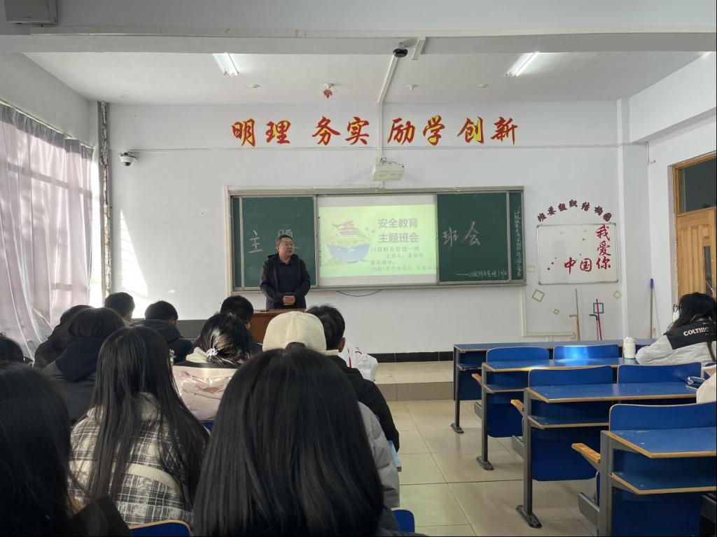 为深入贯彻落实党的二十大精神,维护校园稳定,保障师生安全,按照学校通知要求,我院在2023年12月7日组织召开安全教育主题班会。我院29个行政班级全部开展了本次班会活动,各班联系领导分别参加了此次主题班会。