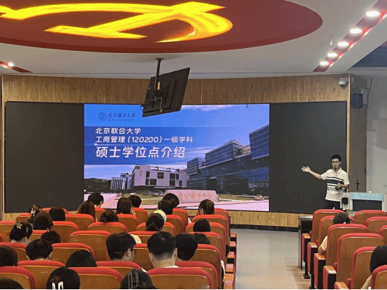 7月8日,经济与管理学院在教学主楼201报告厅举办北京联合大学工商管理硕士(MBA)招生宣讲会。2022级、2023级财务管理和经济与金融专业全体学生参加,学团办主任邢彩霞担任主持。