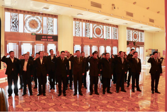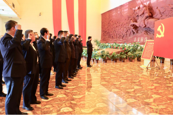 参观前,全体党员来到宣誓大厅,面对鲜艳的中国共产党党旗,由朱玉东领誓,所有人高举右拳,庄严宣誓:“我志愿加入中国共产党……”铿锵的誓言在纪念馆上空激昂回响。展览分为7部分19个单元及8个复原场景,展出各类珍贵文物、照片、复制品和艺术作品1200余件,生动再现了集宁战役完整过程。步入展厅,大家沿着展陈路线,认真听取讲解,详细了解有关情况,回望当年发生在集宁这片热土上的重要战役,深刻感悟中国共产党人的初心使命。