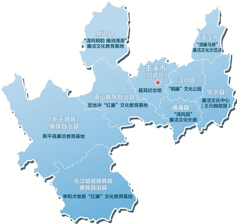 玉溪市主要廉洁教育场所分布示意图。 制图:赵嘉文