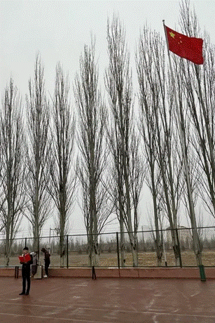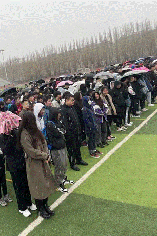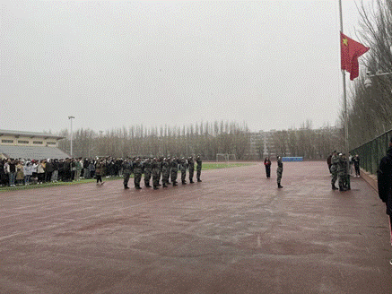 即使是寒风凛凛,参加升旗仪式的师生们依然排成整齐的方队,怀揣着崇高的敬意和无比自豪的心情向国旗行注目礼,向伟大祖国致敬,丝毫不畏严寒。