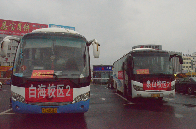 学校共安排5辆校车进行本次迎新接站工作,其中3辆发往泉山校区,2辆发往白海校区。