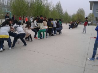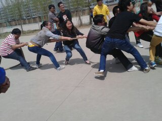 2013年5月6日-5月8日计算机系成功举办了第四届“给力杯”拔河比赛,本次比赛11个在校班级全部参加。每个班级各出10名男生和10名女生,采用淘汰赛制,三局两胜。通过激烈而有趣的比赛,不但增加了同学们对运动的热情,也让同学们明白了团队合作的重要性。