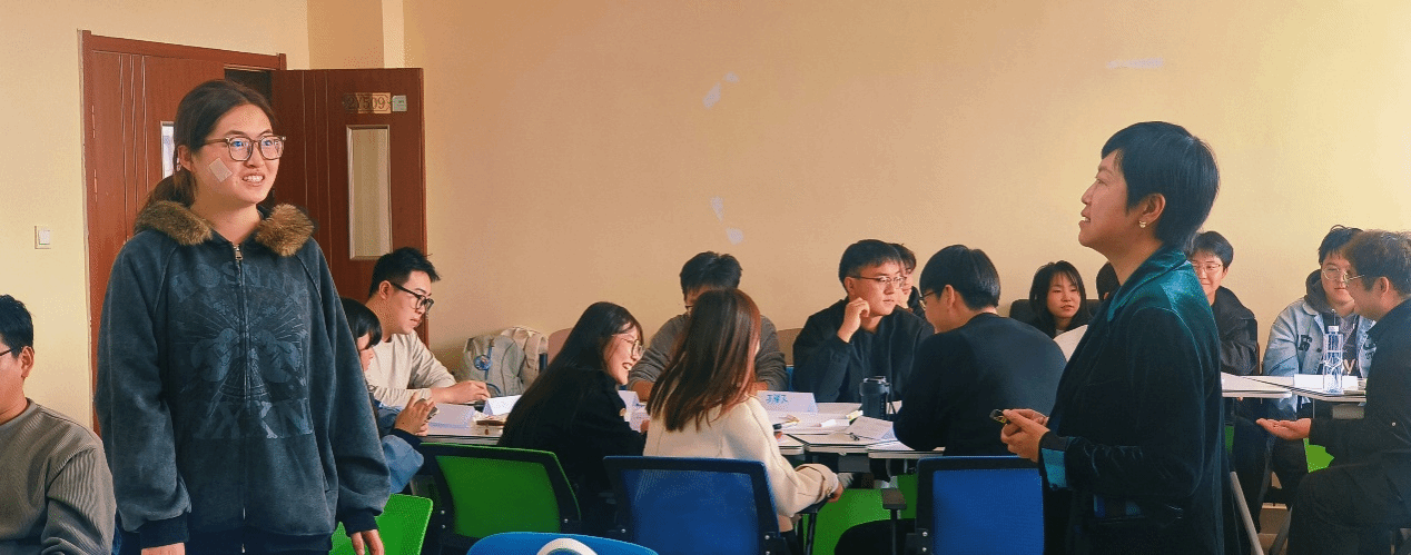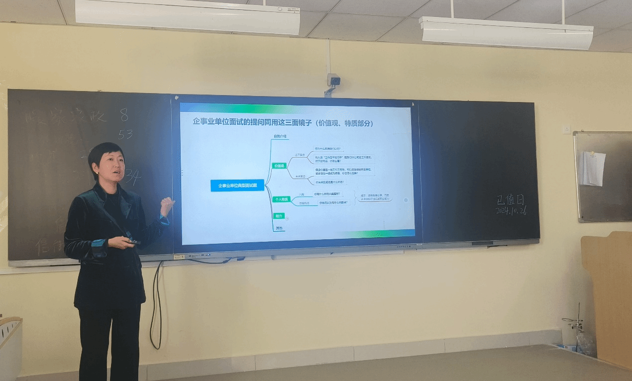 授课过程中,王老师幽默风趣,亲和力强,带领同学们分组模拟开公司、模拟招聘应聘等多种方式互动交流,使同学们通过模拟实操了解未来走向职场需要具备的能力和素养,也更明确了目前这个阶段在校期间需要储备的技能。