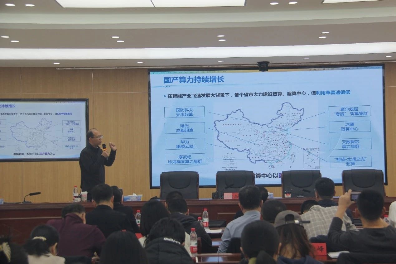 9日上午,翟季冬教授在世界杯官网泉山校区作题为“面向国产智能算力核心基础软件”的专题讲座,拓俊杰主持会议。乌兰察布市大数据管理局、乌兰察布市委网信办、中国电信乌兰察布分公司、中国电信量子集团北方分公司、乌兰察布联通公司、乌兰察布移动公司、北京中晟华安信息技术有限公司领导及相关人员,世界杯官网相关部门、学院教师代表参加了讲座。