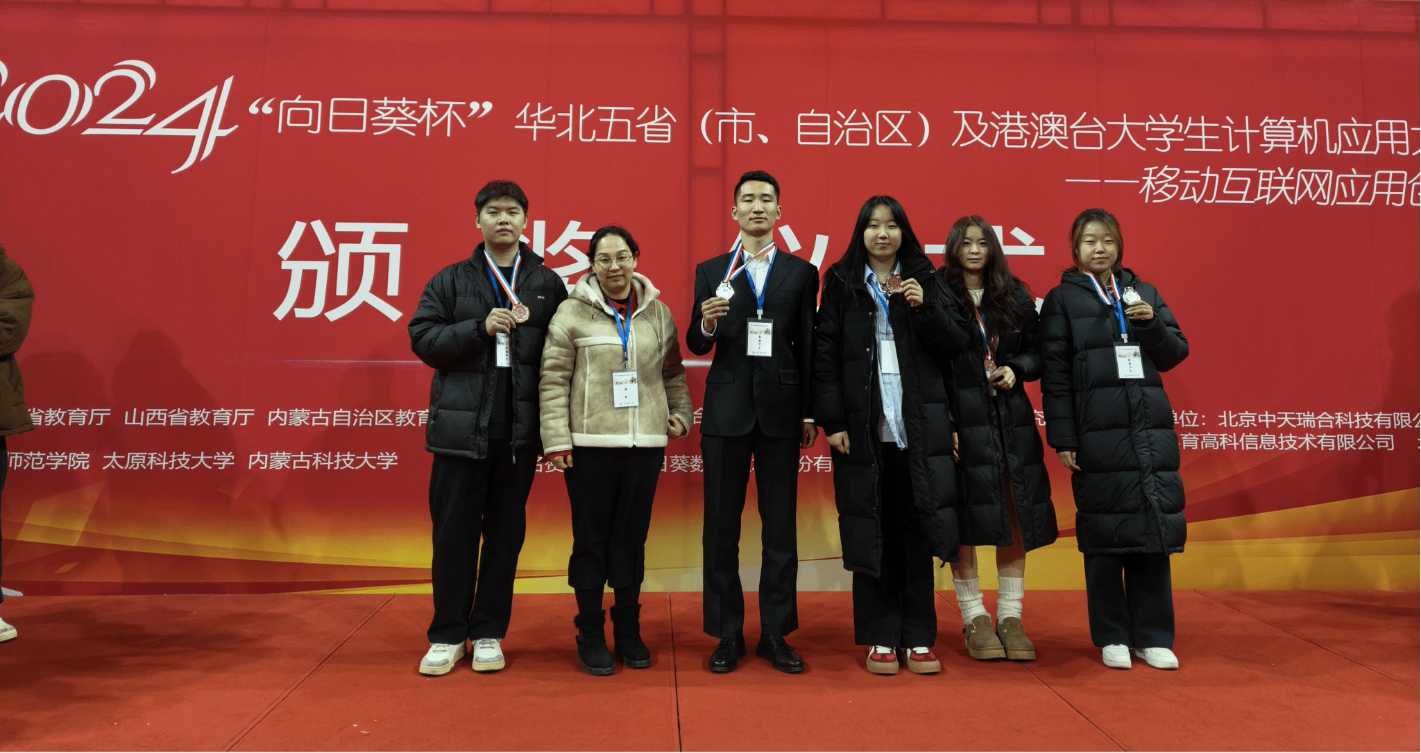 12月7日,“向日葵杯”2024年华北五省(市、自治区)及港澳台大学生计算机应用大赛决赛在北京联合大学成功举办,经过各赛区预赛选拔,共有来自5个分赛区的159支代表队进入总决赛答辩环节。我校陈素清、刘银波老师指导的由王超凡、王富、岳蒙蒙、张晶晶、张一鸣组成的参赛队凭借扎实的专业知识和丰富的实践经验,成功完成了《仰天绿雪》项目,赢得评委们的高度评价,进入大赛答辩环节,最终荣获二等奖;田箫、许惠通老师指导的李悦、马子淳、王敬楠、刘阳组成的参赛队和陈素清、韩净宇老师指导的宫祥森、王昊、张馨圆、刘巧妞、申瑛琪组成的参赛队荣获三等奖。