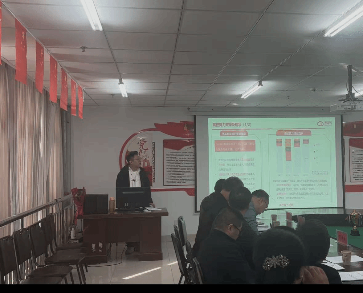 2024年3月14日上午,北疆算力研究院在学校泉山校区逸夫楼711会议室举办了2025年首场 "算力赋能教育高质量发展" 学术研讨会。计算机与大数据学院党总支书记于艳东主持会议。北疆算力研究院各单位负责人、理事成员及相关研究人员30余人参会。