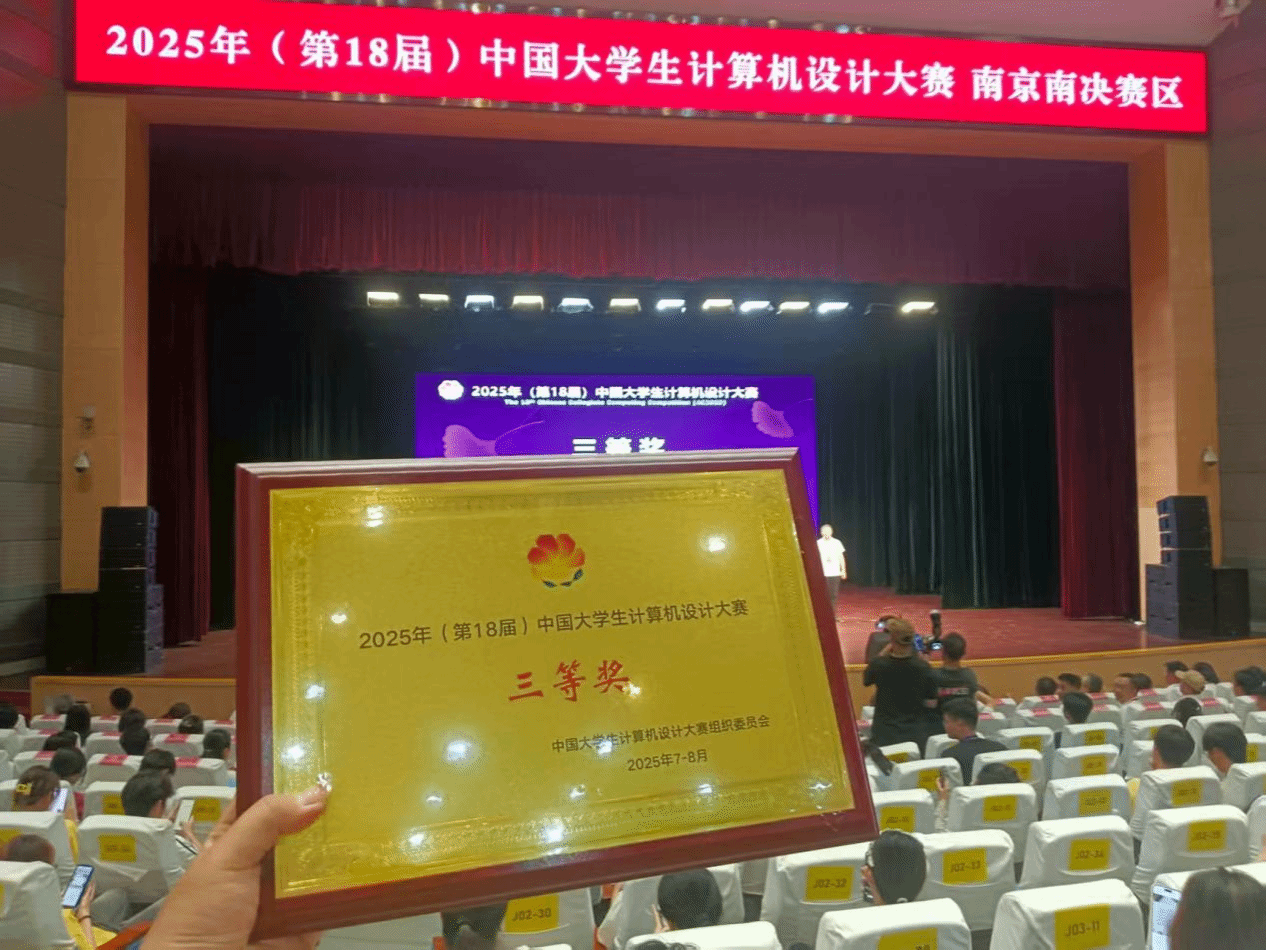 7月22日至26日,2025年(第18届)中国大学生计算机设计大赛(南京南决赛区)决赛在南京大学顺利举办。作为本次全国总决赛的承办方,南京大学、东北大学携手江苏省计算机学会共同搭建了这一竞技平台,吸引了经层层选拔晋级的全国 500多所高校的2800多名参赛选手和领队老师参与,其中“微课与AI 辅助教学”类别汇聚了800余件作品同场竞技。我院学子创作的《趣味学数学:经典牛吃草问题》在该类别中表现突出,成功斩获全国三等奖。