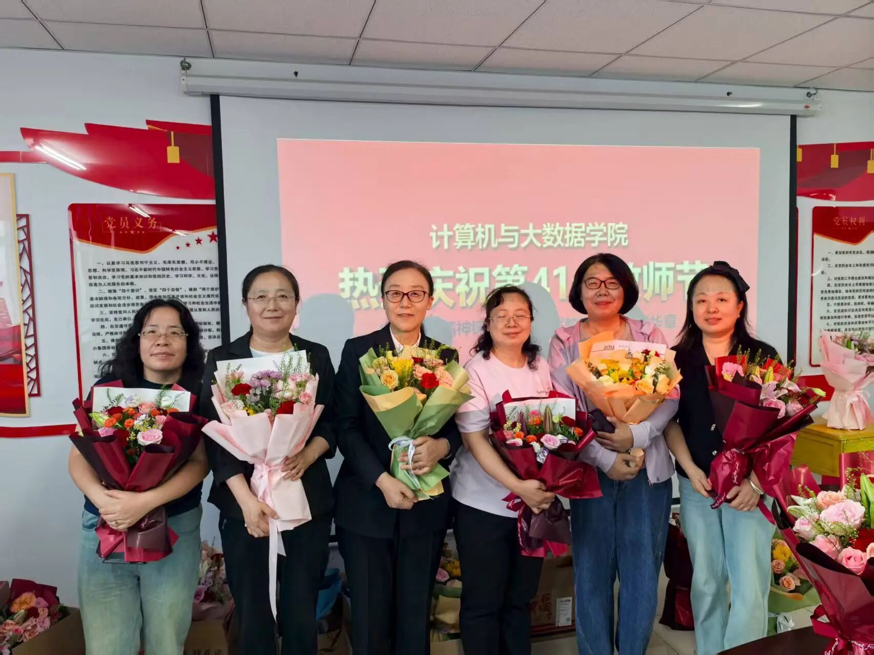 9月10日下午,我院全体教职员工欢聚一堂,共同庆祝属于教育工作者的崇高节日。活动现场洋溢着温馨与感动。桃李情深,师恩难忘。学生代表们为老师送上鲜花,祝愿每一位老师在育人之路上继续绽放光彩,收获满园芬芳。