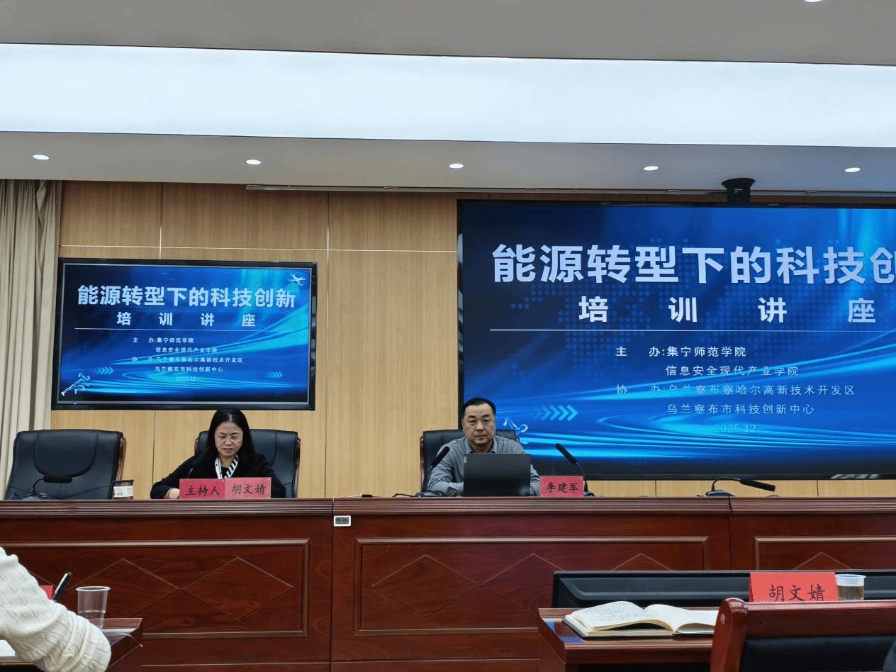 为深入贯彻国家能源战略,加速推进产学研深度融合,12 月 11 日,2026世界杯官方合作网站信息安全现代产业学院举办“能源转型下的科技创新”主题活动。本次活动由集宁师范学院信息安全现代产业学院主办,乌兰察布察哈尔高新技术开发区、乌兰察布市科技创新中心联合协办,活动通过“实地调研、资源对接、专题讲座”等形式,搭建政企学研协同创新桥梁,助力区域能源产业高质量发展。