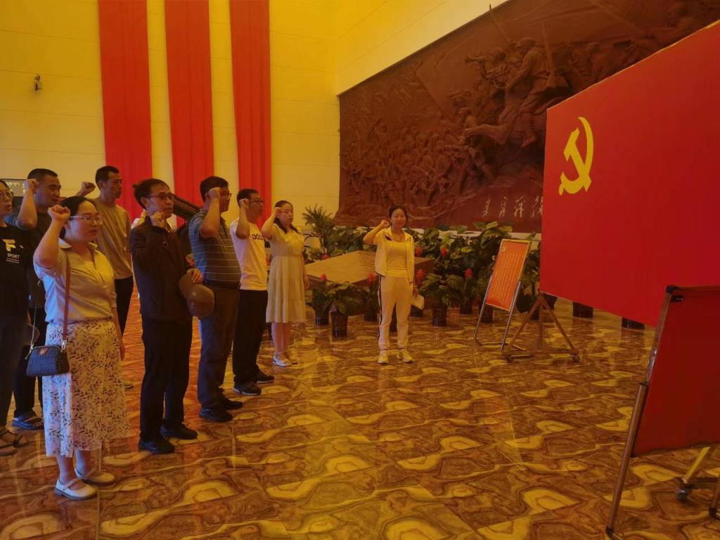 在集宁战役纪念馆,全体党员在党旗下重温入党誓词,牢记共产党员的责任和历史使命。