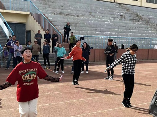 此次活动主要以趣味运动的形式分教工组和学生组同时进行比赛。活动设置旱地赛龙舟、跳绳两个项目。