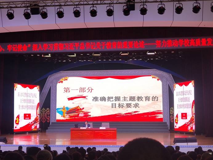 10月18日下午3:00,我院领导班子成员、教师党员和学生党员参加《深入学习贯彻习近平总书记关于教育的重要论述 努力推动学校高质量发展》专题党课培训,本次培训由校党委副书记、校长朱玉东主讲。习近平总书记关于教育的重要论述,为我们努力推动学校高质量发展指明了方向、提供了遵循。我们要以习近平总书记关于教育的重要论述为指导,加快学校内涵建设和转型发展,加快建设高水平应用型师范大学为己任,凝心聚力,砥砺前行。