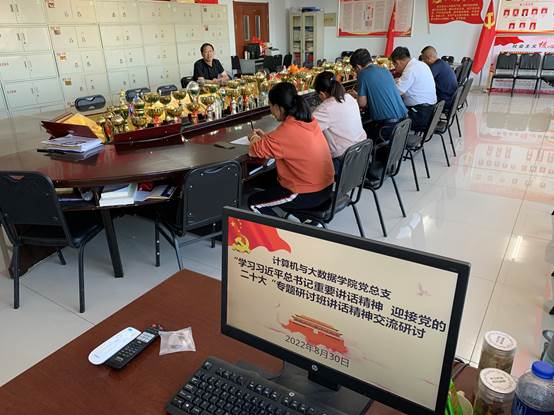 根据学校党委《关于组织学习贯彻习近平总书记在省部级主要领导干部“学习习近平总书记重要讲话精神 迎接党的二十大”专题研讨班上的重要讲话精神的通知》(集师党发〔2022〕106号)精神,计算机与大数据学院党总支理论学习中心组于2022年8月30日下午专题了学习习近平总书记重要讲话精神并开展交流研讨。学校党委委员、副校长梁政到会巡听旁听,会后,调研了学院半年来工作情况。