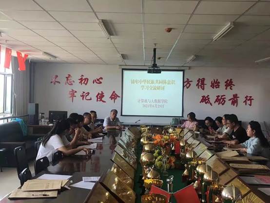 按照学校党史学习教育工作安排, 6月29日,在逸夫楼711会议室,计算机与大数据学院理论学习中心组召开了铸牢中华民族共同体意识专题研讨会,会议由党总支书记邢德胜主持,学院理论学习中心组成员参加了会议。