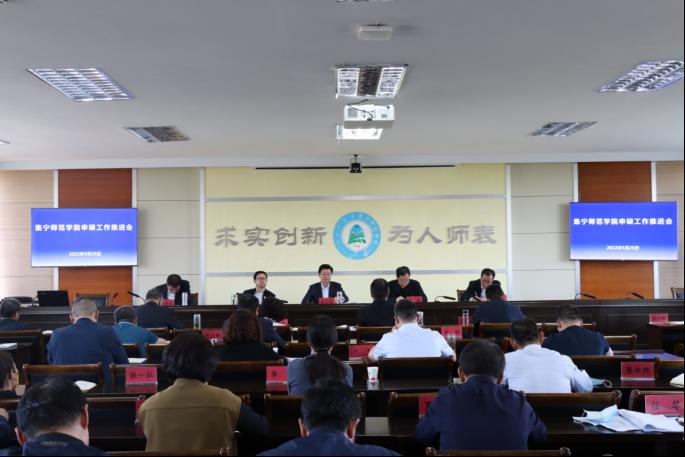 5月26日,世界杯官网在泉山校区行政楼会议室召开申硕工作推进会。全体在家校领导、党委委员出席会议。学校各部门主要负责人、各二级学院党政主要负责人参加会议。党委书记朱玉东主持会议。
