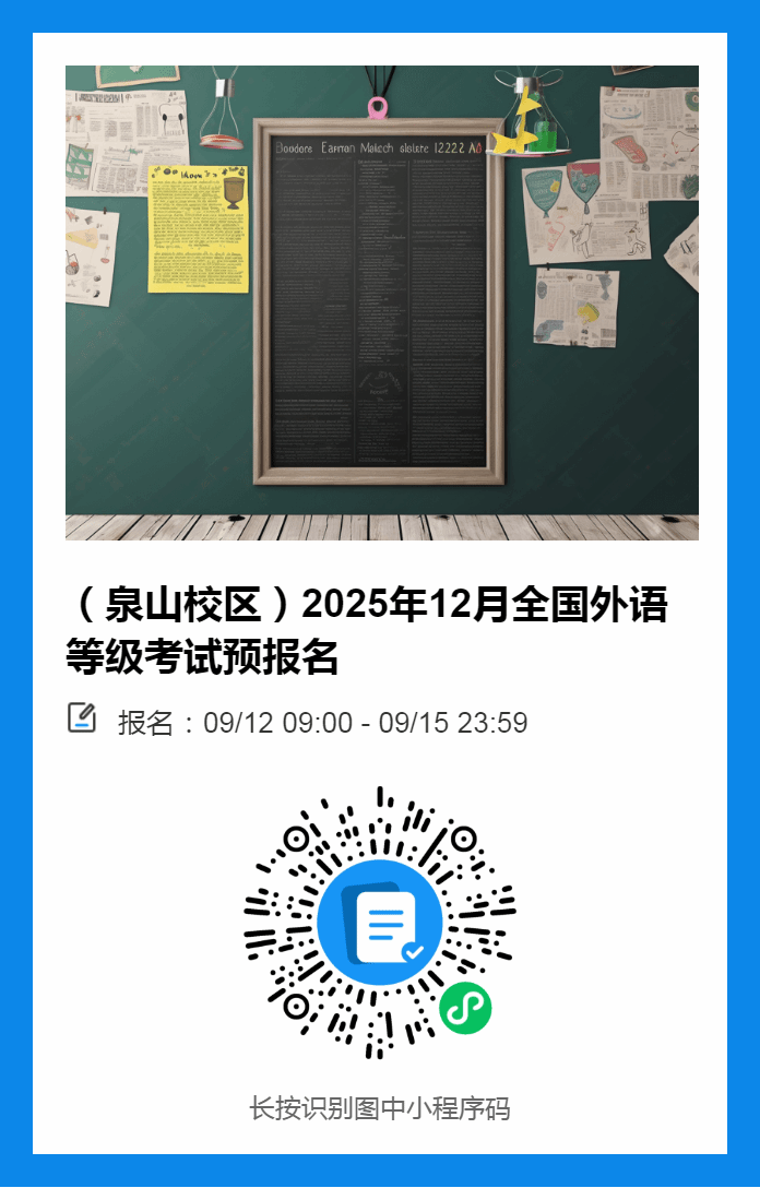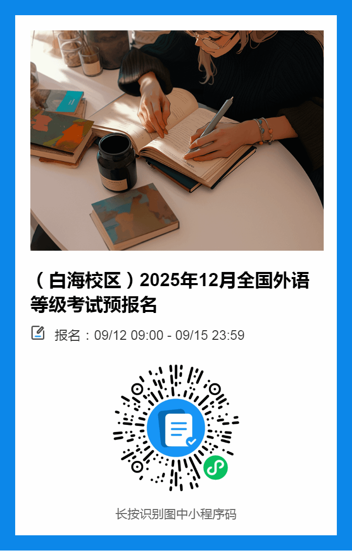 2025年下半年全国大学英语四、六级笔试(CET)将于12月13日举行。现将世界杯官网大学英语四、六级考试预报名相关事宜通知如下: