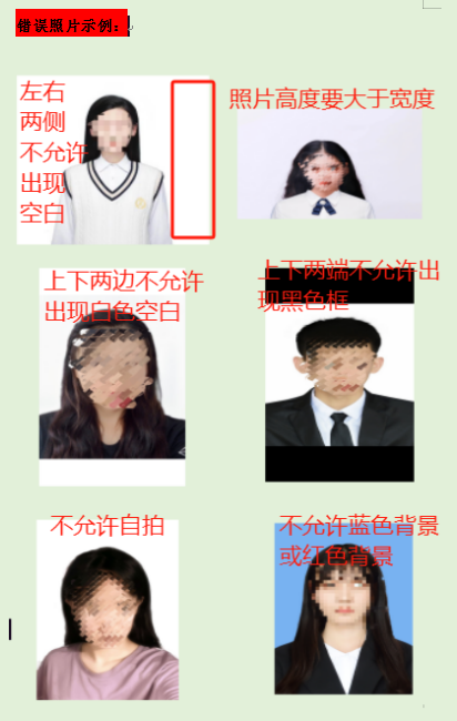 注意:预报名考生务必严格按照上述要求提交照片,凡照片不合格者一律无法参加正式报名考试,后果自负。