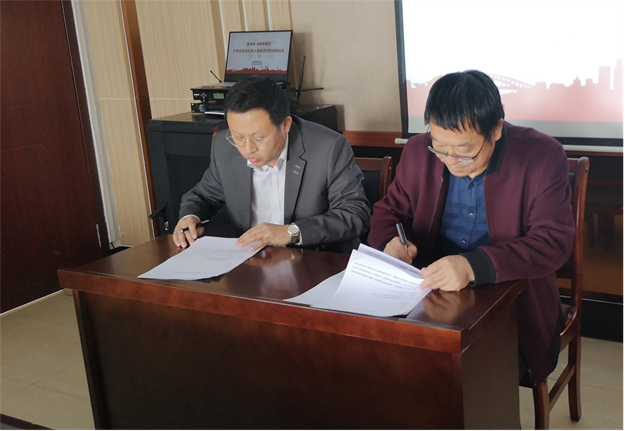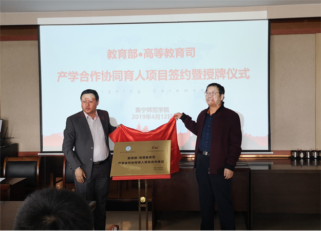 姚玉阁介绍了参会领导和嘉宾。随后,项目负责人么秀杰发言,校企双方代表签署合作协议、揭牌并合影留念。