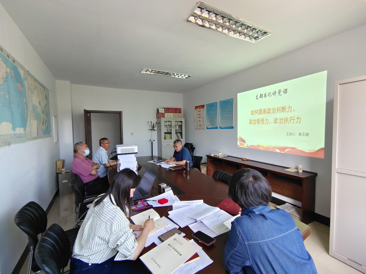 支部书记姚玉阁为全体党员讲了题为《如何提高政治判断力、政治领悟力、政治执行力》的党课,他结合党员教育工作实际,从提高政治判断力、政治领悟力、政治执行力的重大意义和如何提高政治判断力、政治领悟力、政治执行力两方面做了详细的讲解,引导党员进一步坚定理想信念,提高思想觉悟。