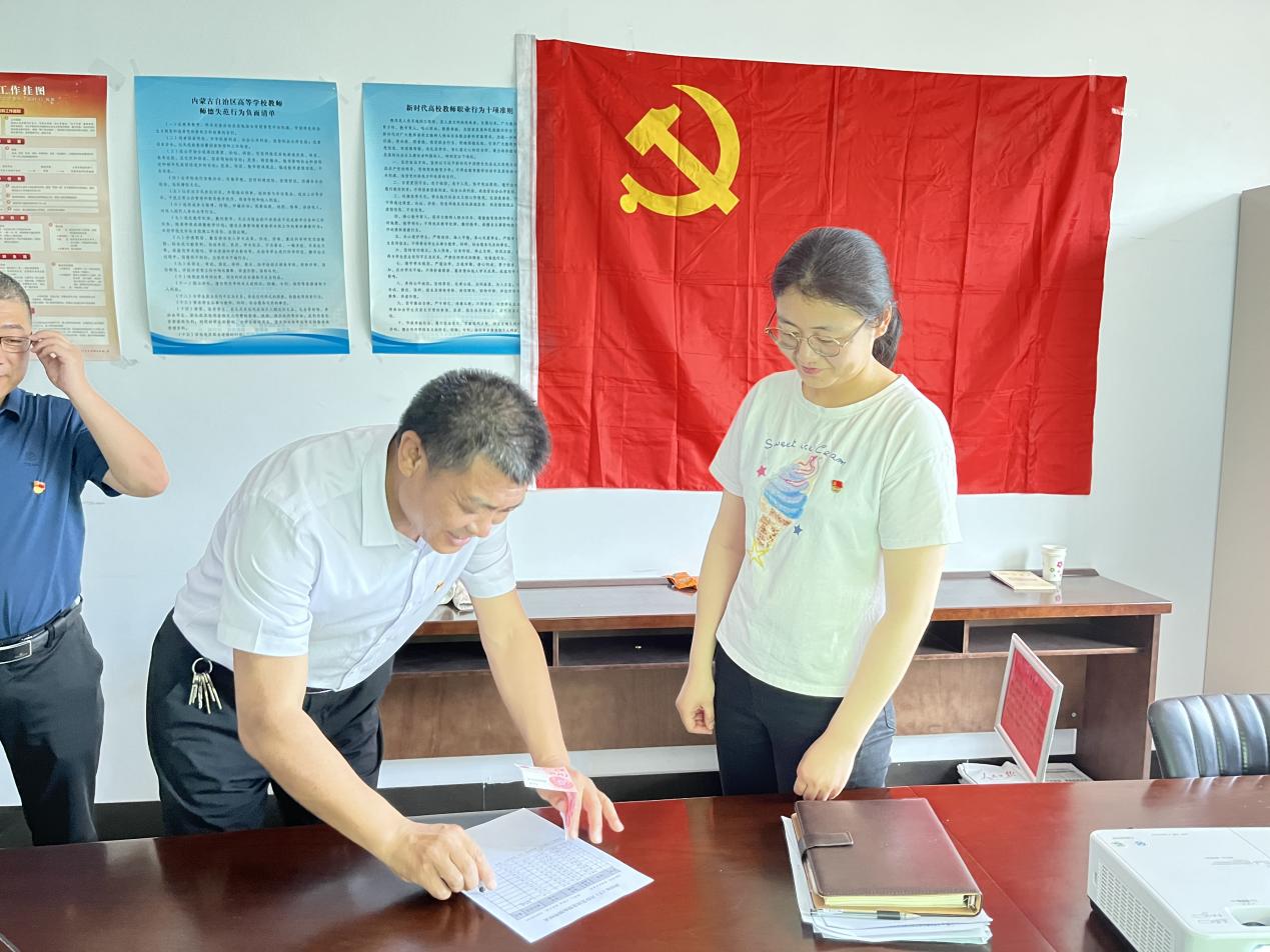 活动伊始,支部全体党员面对党旗重温了入党誓词,在党旗下接受心灵的净化和洗礼,牢记共产党员的政治责任和历史使命。紧接着进行集中交纳党费活动,进一步深化党员的党性教育,严肃党内活动,增强党员的归属感和荣誉感。活动中还学习了《中国共产党章程》和《中共中央关于党的百年奋斗重大成就和历史经验的决议》,在回顾党的百年奋斗中,加深了对党的理解和认识。