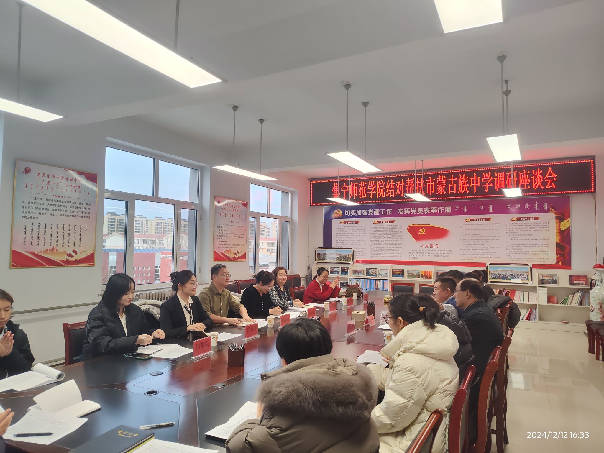 1212日,继续教育学院牵头,由继续教育学院、物理与电子信息工程学院、石墨烯研究院、生命科学与技术学院、外国语学院等学院教师组成的专家指导团队深入乌兰察布市蒙古族中学开展结对帮扶调研座谈会。
