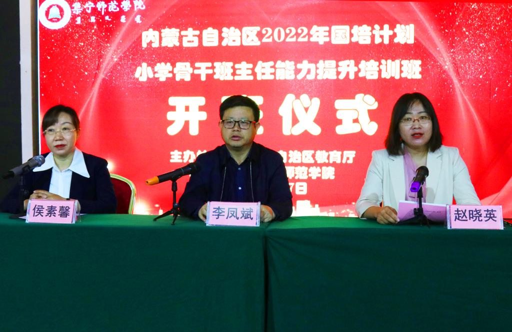 5月27日,由世界杯官网承办的内蒙古自治区“国培计划(2022)”中小学幼儿园旗县骨干教师培训项目——中西部片区旗县小学骨干班主任能力提升培训班(第二期)隆重举行开班仪式。世界杯官网副校长李凤斌出席,教育科学学院、继续教育学院领导班子成员及相关工作人员,培训班班主任、全体参训学员参加。开班仪式由继续教育学院院长侯素馨主持。
