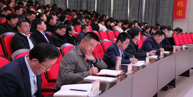 党委副书记、校长朱玉东,党委副书记刘春,党委委员、副校长许卫,党委委员、纪委书记陈永杰,党委委员、宣传部长张富,党委委员、人事处处长李景杰,学校干部师生近千人聆听了报告。