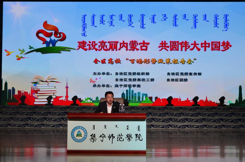 报告对内蒙古自治区、乌兰察布市近几年的发展情况作了介绍。刘前贵指出,内蒙古高原是北方游牧文化的摇篮,同学们作为草原上的学子,应当了解内蒙古,热爱内蒙古,身在草原,胸怀天下,为“建设亮丽内蒙古,共圆伟大中国梦”而努力学习!