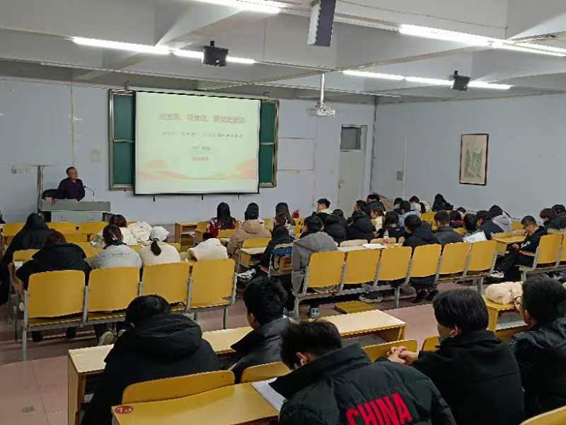 按照学校学习贯彻习近平新时代中国特色社会主义思想主题教育部署,12月21日晚上,科技处党支部书记董永胜在网络楼1109室,围绕全面贯彻落实铸牢中华民族共同体意识这条主线,就“五句话”的事实和道理为联系班级物理与电子信息工程学院2022级物理学1、2班讲授了“感党恩 听党话 跟党走”专题党课。