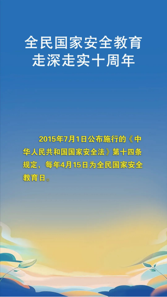 2025年4月15日是第十个全民国家安全教育日。今年的主题是:全民国家安全教育,走深走实十周年。“国安宣工作室”发布最新发布的宣传手册,到啦!