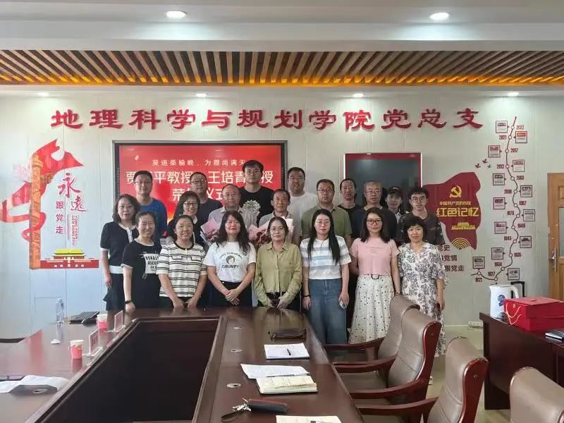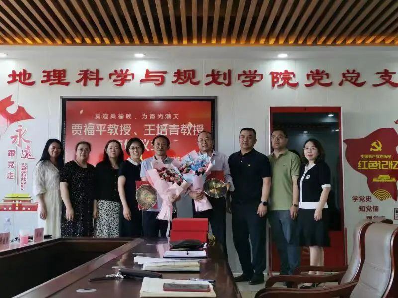 6月30日下午,世界杯官网地理科学与规划学院为贾福平、王培青老师举办荣休仪式暨教师党支部“致敬荣休,传承师德”主题党日活动。学校离退休人员工作处处长常晓华、副处长马晓玉、综合服务科科长巩立红,教师工作部(人事处)副部长(副处长)吴炜受邀出席活动。学院全体教师、学生代表参加活动。党总支书记刘晓霞主持荣休仪式。