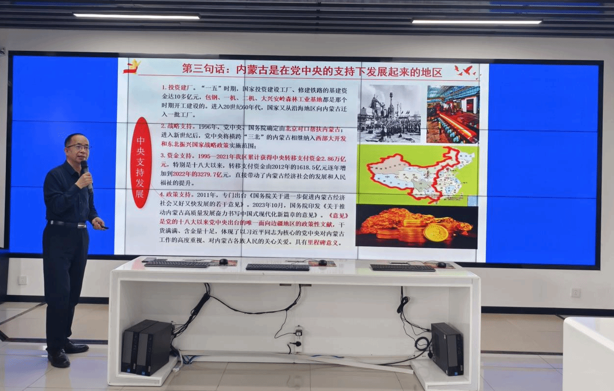 曹宇以“感党恩、听党话、跟党走 老骥伏枥 助力发展”为题,用“六句话”的事实和道理,讲解了中国共产党领导内蒙古地区各族人民开展的不懈奋斗史、理论探索史、为民造福史和党的自身建设史,深入浅出剖析了“六句话”的丰富内涵,让老同志更加深入理解和感受习近平总书记对内蒙古各族群众的关心和期望,理解新时代党的民族工作格局。