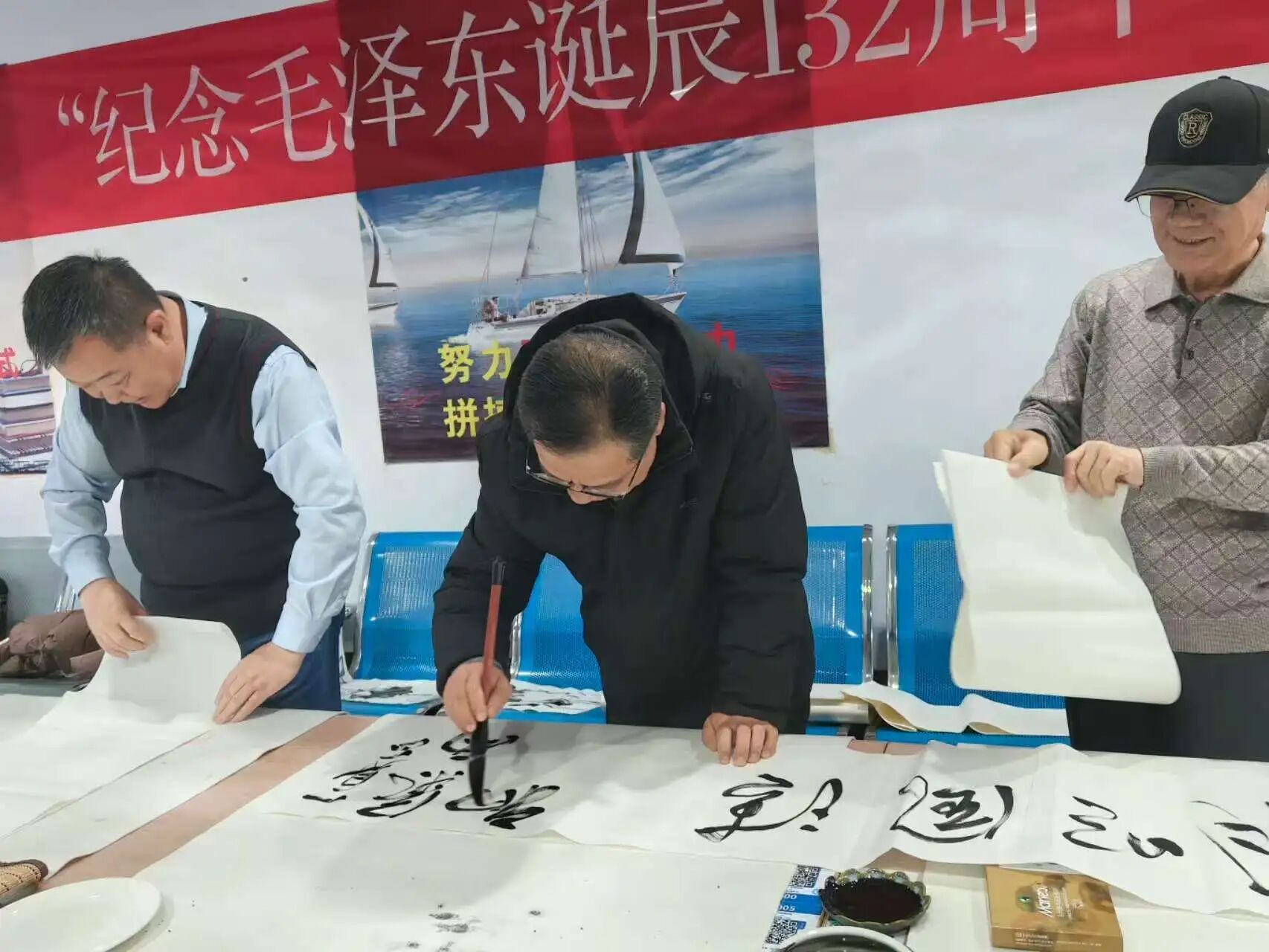 为深入学习贯彻习近平总书记关于用好红色资源、传承红色基因的重要论述,深刻缅怀毛泽东同志的丰功伟绩,激发师生爱国情怀与艺术创造力,12月25日,工会和离退休人员工作处党总支联合图书馆党支部,在泉山校区图书馆三楼举办“纪念毛泽东同志诞辰132周年”书画笔会交流活动。校党委副书记李景杰,党委委员、纪委书记、监察专员赵永军,党委委员、统战部部长赵向军,党委委员、组织部部长李瑞俊出席活动。学校离退休老同志代表、书画专业教师和学校书画爱好者参加了本次活动。