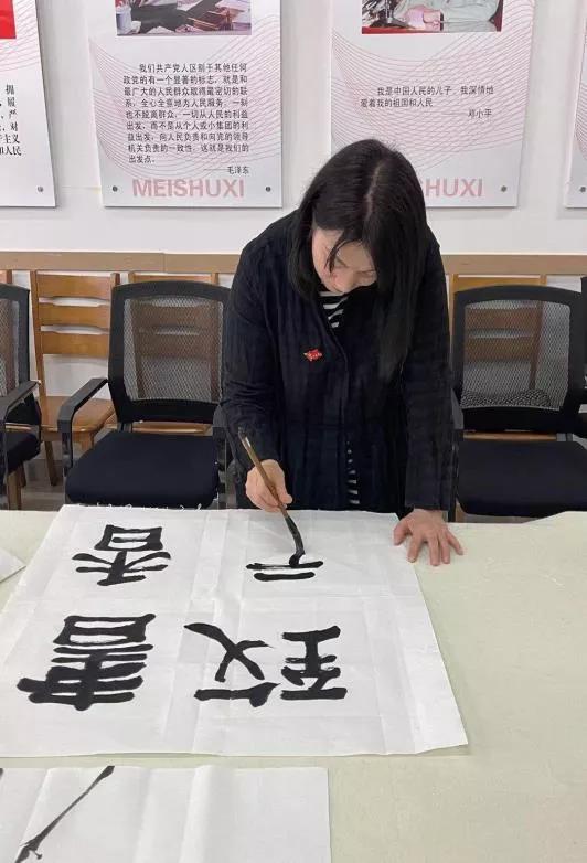 美术与设计学院的教职工党员进行书法、国画的展示与现场创作,扎实践行“书香致远  墨卷至恒”主题活动,充分展示我院对于书法笔墨精神的传承。美术与设计学院党总支书记焦俊亮同志向社区党支部书记呈献个人书画作品30余件。学院学生党员现场制作了DIY红色文化书签。