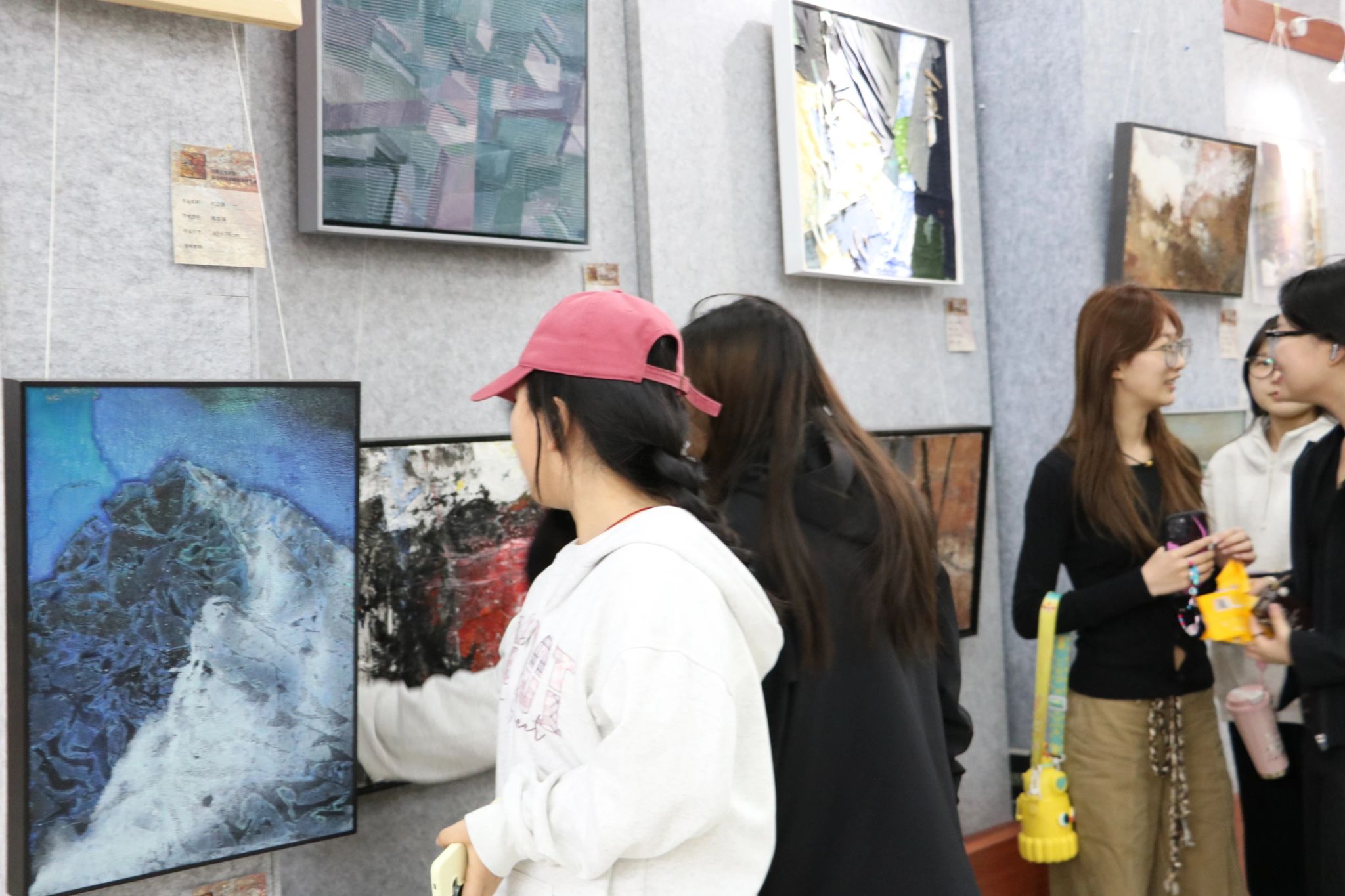在学院跨界重构融合——综合材料画展绘画教学研究展筹备中,组织学生参与展览策划、展品整理、展厅布置等流程工作。学生分为策展组、设计组、施工组,策展组负责主题提炼与展品筛选,设计组完成展陈方案设计,施工组则承担展台搭建、灯光调试等具体劳动。通过布展劳动,培养学生的责任意识与团队协作能力。在展品安全维护环节,学生需严格执行包装、运输、陈列的规范流程;在展厅布局调整中,需根据空间尺寸反复优化方案。布展结束后,组织学生撤展,按照要求打包作品,在劳动实践中解决展览的相关问题,深化对劳动专业性的认知。将展览经验运用于日常课程观摩展、写生展等。