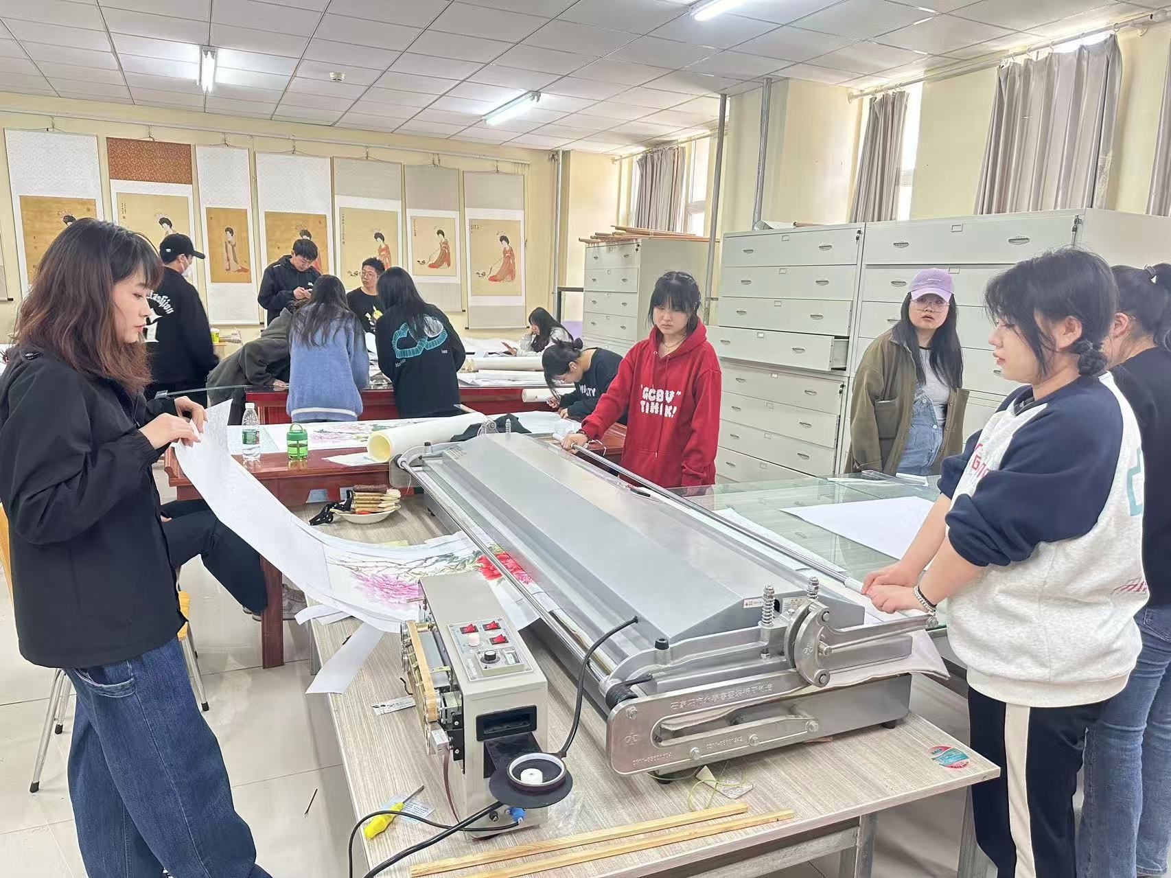 装裱作为一项古老而精湛的非遗技艺,其在高校中的传承与教学显得尤为重要。在装裱艺术课程教学中,引导学生参与调制浆糊、托画心、镶嵌、包边等传统工艺劳动,让学生在协作中亲手制作过程中,深入理解传统装裱工序与材料特性。装裱艺术课程不仅教授装裱技艺,更注重培养学生的动手能力、观察力和耐心。同时,强调劳动实践与理论相结合,使学生在动手操作中学习装裱技艺,并进一步理解和欣赏传统文化。在学生学习的过程中,能够提升他们的艺术修养和审美能力,为其艺术创作提供更多的灵感和可能性。
