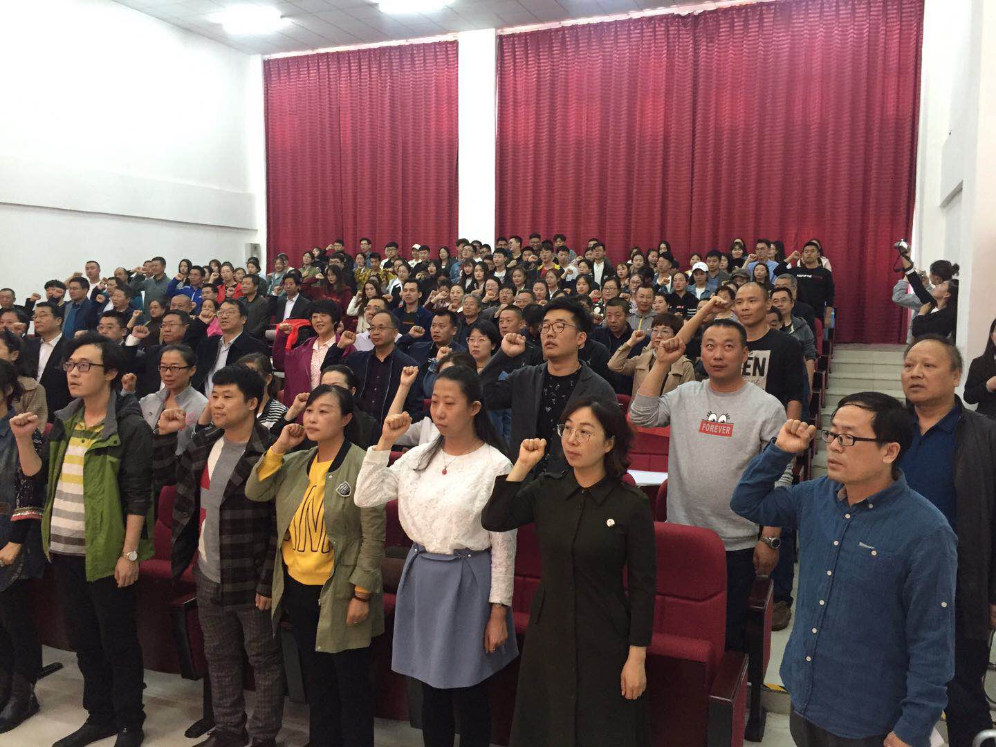4月19日下午在美术学院多功能报告厅举行“不忘初心,牢记使命”、重温入党誓词和《厉害了,我的国》观影主题党日活动。院党委书记刘前贵,院党委委员、纪委书记张利平,院党委委员、副院长许卫,院党委委员、副院长梁政,组织统战部部长朱俊仙以及部分二级学院主要领导、直属党支部的主要领导参加本次党日活动。
