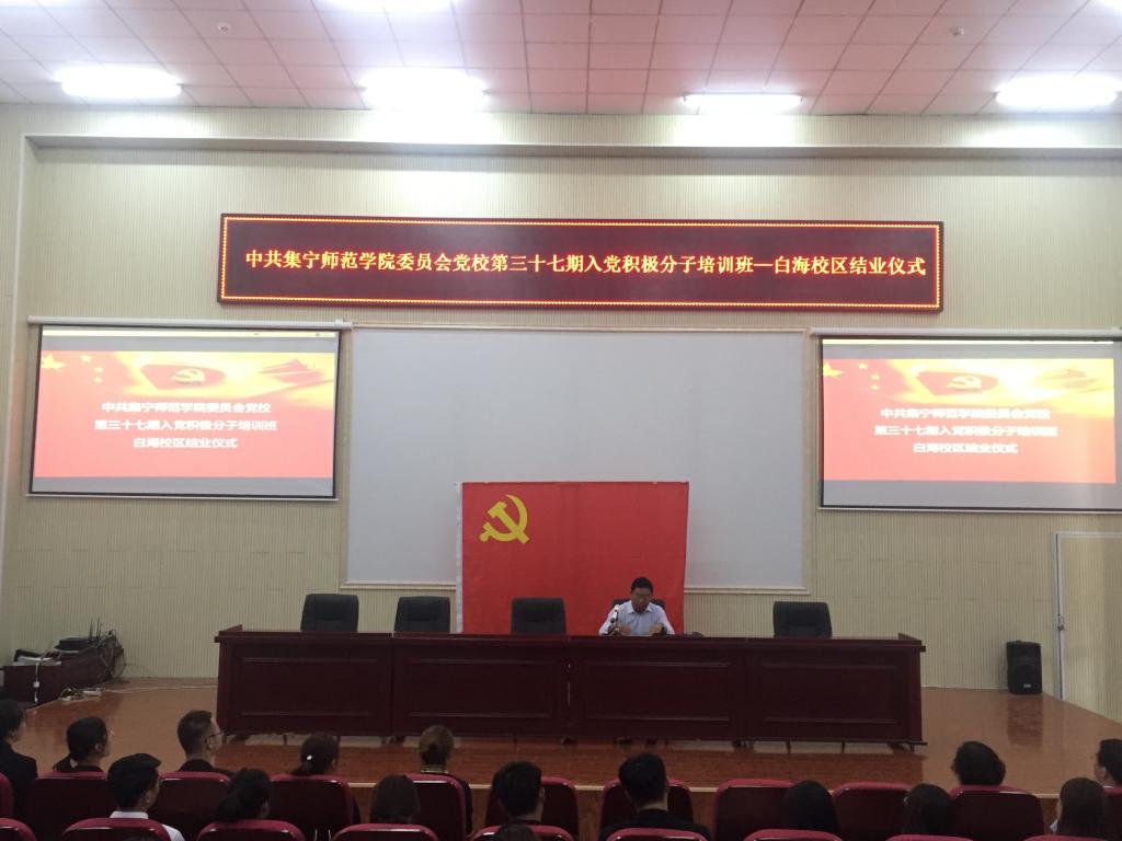 2018年6月22日下午,中共2026世界杯官方合作网站委员会党校第三十七期入党积极分子培训班白海校区结业仪式,在美术学院学术报告厅举行。仪式由美术学院党总支书记焦俊亮主持,校党委副书记、纪委书记张利平,组织统战部副部长海棠,组织统战部科长唐学明参加结业仪式。