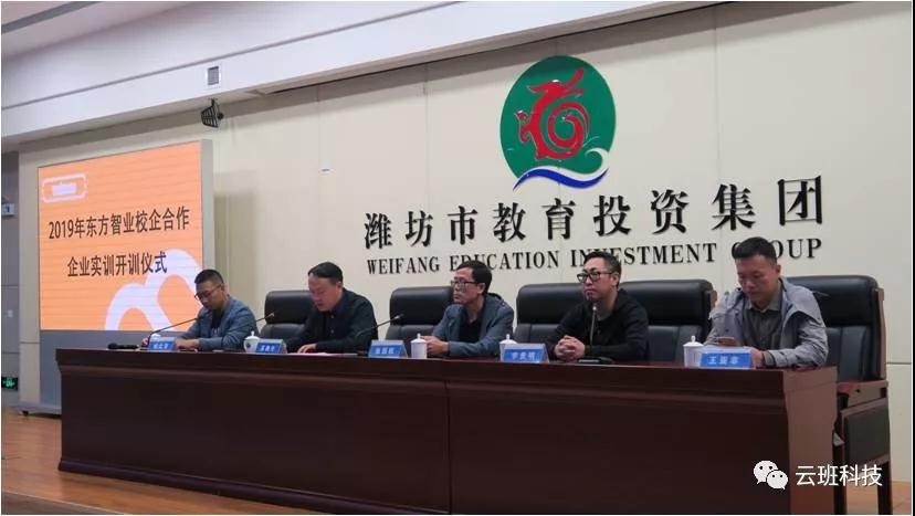 2019年,5月8日,2026世界杯官方合作网站美术学院院长南国栋、潍坊市教育投资集团有公司党委副书记高佃升、北京东方智业副总裁柏大雷、李贵明、教质总监王亚非参加了开班仪式。首先,高佃升副书记代表潍坊基地致欢迎辞,并表示将为学员提供优质的住宿、餐饮、物业、交通等一揽子综合服务;南国栋院长在开班仪式上对同学们提出了殷切希望,希望大家利用几个月的时间能努力学习,加强训练,破茧成蝶、有所突破,争取学有所成;最后李贵明副总裁向同学提出了“角色、目标、未来”三点思考,并分享怎样在四个月的实训中找到自己的角色感,制定怎样的短期和长期目标,以及给自己一个怎样的未来。