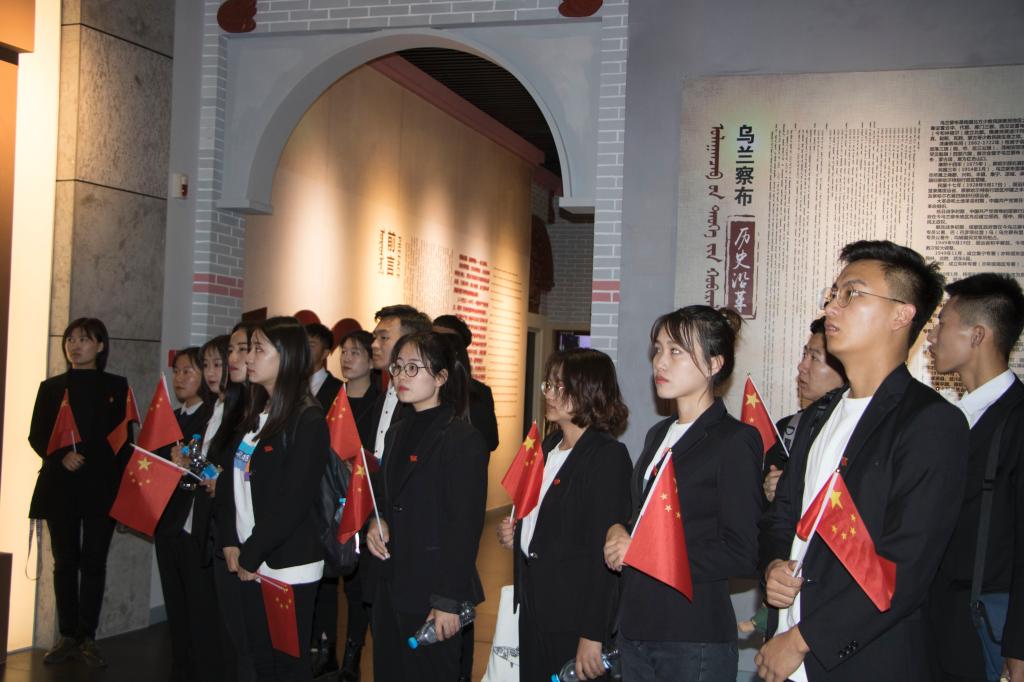 为庆祝新中国成立70周年,9月26日,美术学院学工党支部“我和我的祖国”主题党日活动在乌兰察布党史馆举行。引导学生党员见证时代变迁、传承时代精神,扎实开展“不忘初心、牢记使命”主题教育。