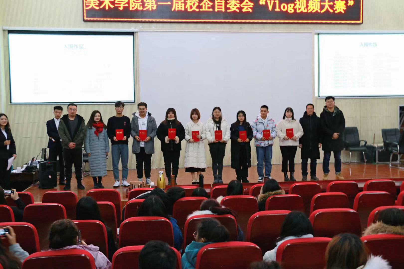 在美术学院各领导的支持下,由校企自治委员会主要负责并组织的第一届大学生“Vlog视频大赛”在2019年11月29日晚上正式举行。此次比赛的初衷是因为到了期末,学生学习压力大,考试任务重,所以希望通过此次活动,发散思维,丰富课余生活,也倡导学生利用互联网的媒介,记录自己生活,同时在制作Vlog的过程中学习相关知识,寓教于乐。