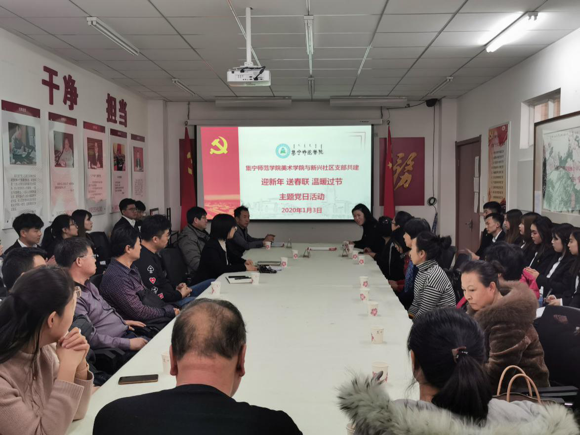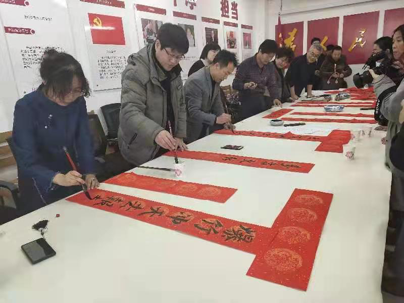 为深入学习贯彻习近平新时代中国特色社会主义思想,全面贯彻落实党中央决策部署,执行校党委有关党建工作的安排要求,值此新春佳节来临之际,以体现党员群众心相连,弘扬中国传统文化为目标,美术学院教工党支部联合学工党支部与前进路办事处新兴社区党支部举办“不忘初心,牢记使命——美术学院与新兴社区支部共建 迎新年 送春联 温暖过节”主题党日活动。