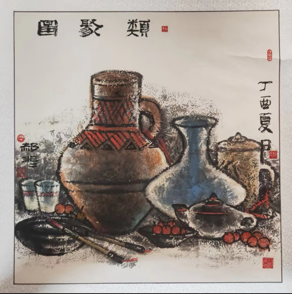 17、国画作品《人类历史文化文明与传承》、入选乌兰察布市政协系统庆祝自治区成立70周年《同心礼赞美术作品》展、2017年7月