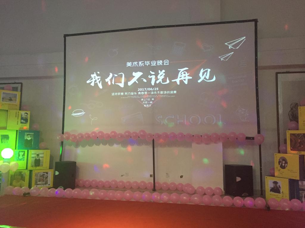 2017年6月27号晚上7:00在一楼报告厅举行欢送2017届毕业生晚会。到场的人员有美术学院领导、毕业班导师、全体辅导员老师以及任课教师、院学生会成员、和学生等。