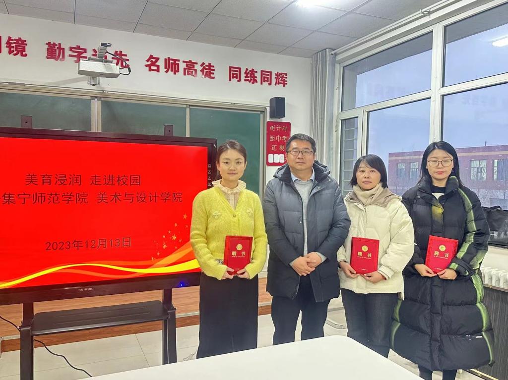 课程结束后,亿利东方相关领导,教师及我院教师就美育课程教学、师资培养、科研、校园文化建设等内容进行了座谈。通过座谈,着力推动高校与中学美育建设互联互动,品牌化、多样化、特色化发展,切实提高美育覆盖面,努力打造乌兰察布市美育教育品牌。会上,我院聘用亿利东方学校两名美术教师为我院校外教育实习指导教师;亿利东方学校聘用我院五名教师为中学美术兼职教师,双方颁发了聘书并达成合作意向。