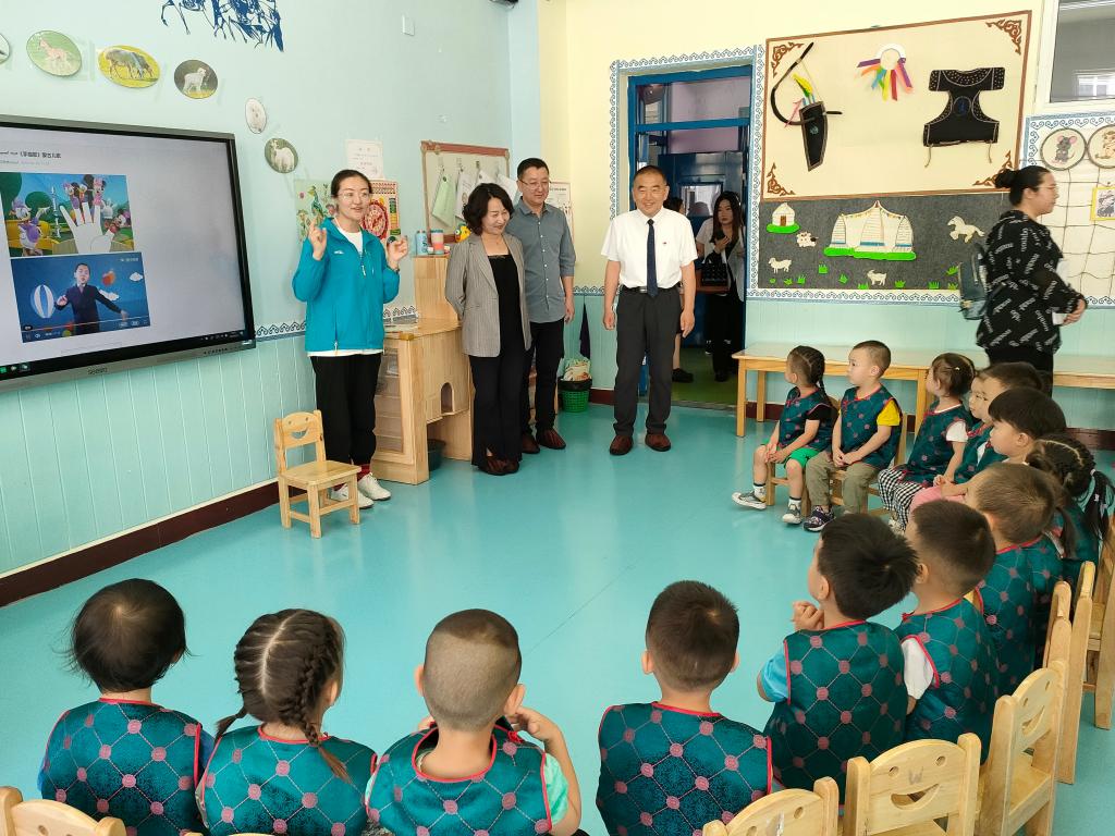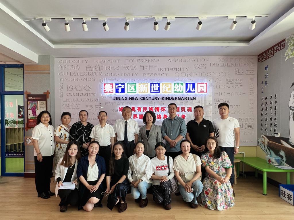 蒙古学学院党总支书记额尔敦其其格、副院长呼和满都拉等一行人在集宁新世纪学校党支部书记刘鑫、党政办主任陈高奎、集宁区新世纪幼儿园园长李翠云的陪同下,对新世纪幼儿园进行参观,深入了解幼儿园办学规模、办园特色、教育理念等情况。
