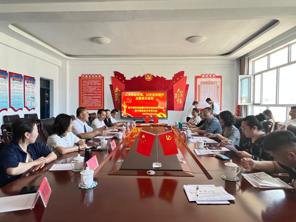 集宁新世纪中小学党支部刘鑫书记首先对额尔敦其其格书记一行的莅临表示热烈的欢迎,并围绕我园的发展情况以及对于人才的需求提出合理化建议,同时表达了对两校共建合作的期望。